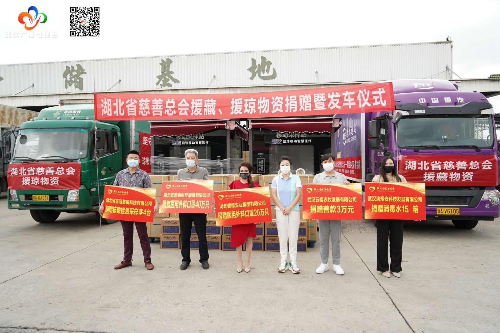 据悉,此批援藏、援琼物资是在湖北省医疗器械行业协会支持下,联动湖北健德实业集团有限公司、湖北安南泰医疗器械有限公司、湖北省91抖音视频在线观看装备科技有限公司、武汉清规安科技发展有限公司、武汉五福农牧发展有限公司、湖北屹轩东商贸有限公司共同捐赠,包含善款4万元、医用外科口罩60万只、核酸检测亭4台、消毒水15箱。湖北中邮物流责任有限公司、湖北盛辉物流责任有限公司、跨越速运集团有限公司为物资提供运输、仓储、中转装卸等服务支持。