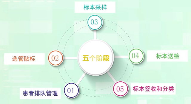 患者排队管理 选管贴标 样本采样 样本送检 标本签收跟分类。这5个阶段是医院临床检验分析前需要经过的标准流程。完成这些流程原来是靠人工操作来完成。这种人工操作,占用了医护人员的大量时间,导致了抽血检查的效率不高。容易出错以及一系列不规范问题。1%的失误将会对患者的健康生命带来严重的威胁。需要更好的来完成这些流程跟解决这些问题。让医护人员的医护效率提高服务更好医疗更精确。