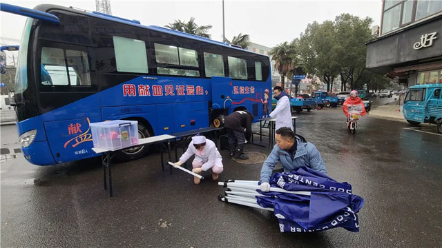 共度健康年采血车新春佳节坚守工作人员坚守岗位