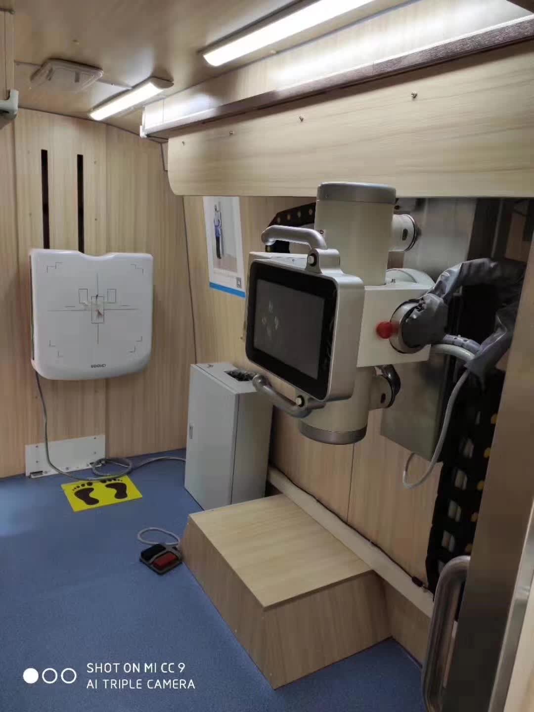 车载悬吊DR覆盖拍摄范围更广泛,集成在体检车、医疗车上面固定的X射线装备。可移动比医院固定的DR更便捷。可以在不同场景进行DR检查,一般配备在7-12米的体检车上面,还有部分使用大客车、大货车来进行改装。数据传输快噪音低。核心配件是超高频高压发生器,65KW大功率,300HHz逆变频电流,旋转阳极X射线球管,双重选择平板探测器。放射剂量也有严格的控制,都配大尺寸的业绩触摸屏,优化工作流程,可以看到曝光数据和机械的运动范围。让操作更直观,悬吊双板结构调换任何体位无拍摄死角,自动跟踪定位。