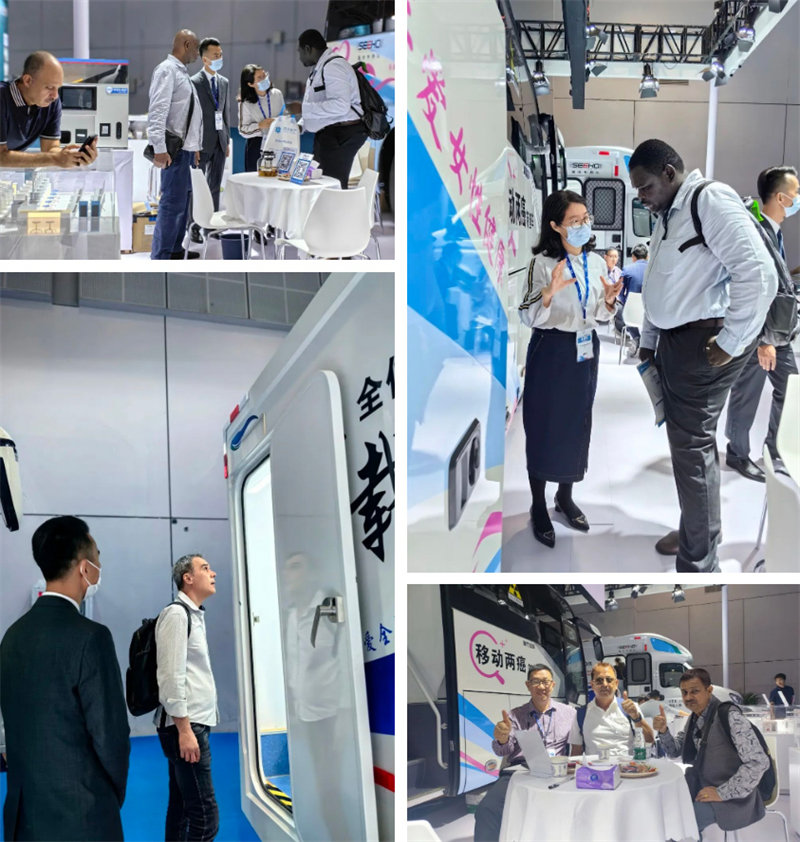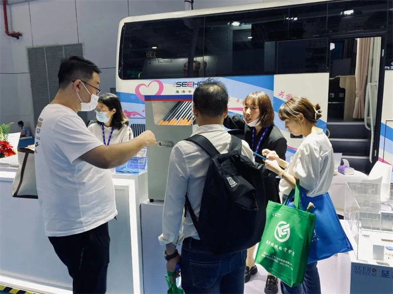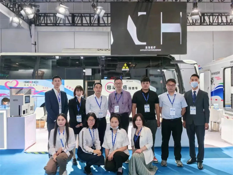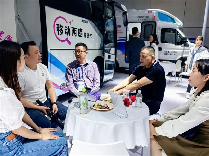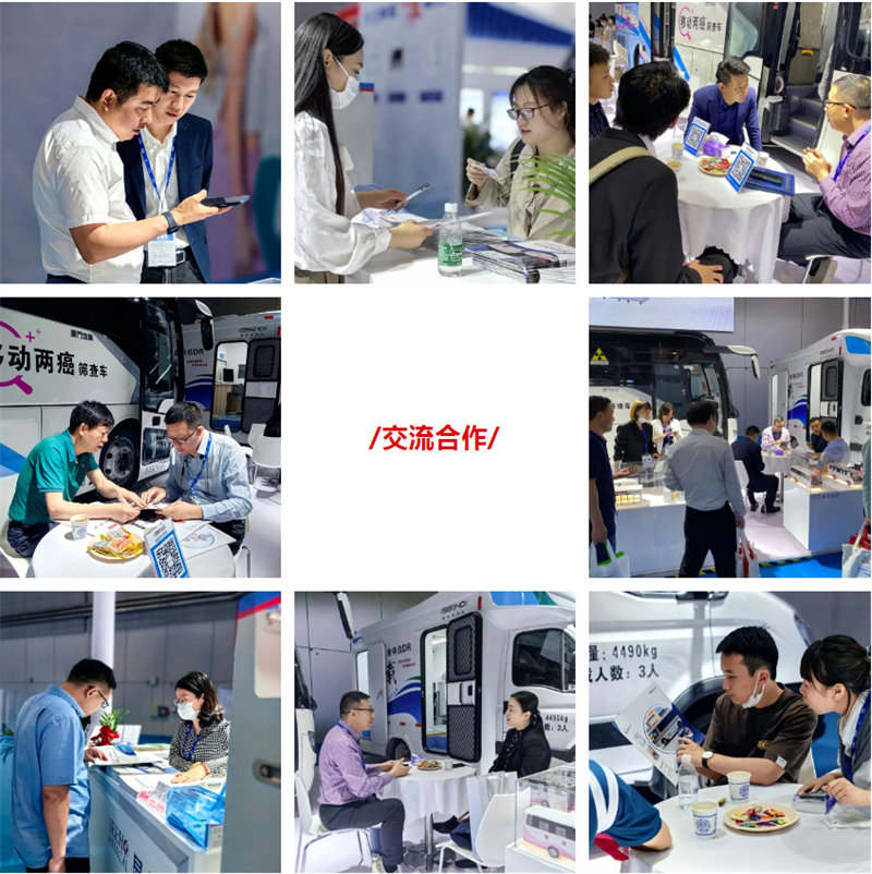 2台移动两癌筛查车、车载全体位DR在现场吸引了大量眼球,纷纷驻足停留,上车参观洽谈。