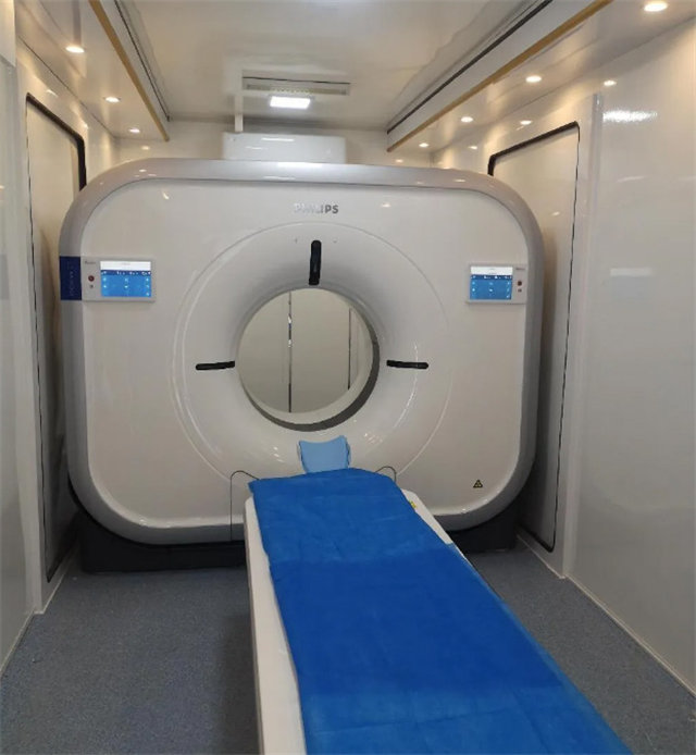 提升医疗服务质量,医院改善体检就医体验。移动CT体检车投入使用,采用了移动CT高端设备,精准体检检查,移动服务。这个相当是个移动的CT检查室。可以开到需要的地方进行CT检查,大大缓解医院压力,特别是可以解决检查人数多,等待时间长的问题。移动机动性可以深入到各个地方,开展义诊,科普,检查等医疗检查服务。让大家在附近就可以享受到高端的CT检查。